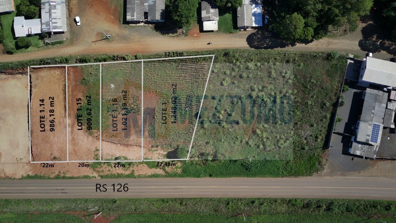 Lote Comercial com 1.021,19 m2, frente com a RS 126 com 22,00 metros. Fundos com outra Rua B por 22,00 metros. Excelente localização na entrada da cidade.